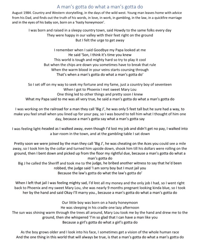 A Man’s Gotta Do A man’s gotta do what a man’s gotta do Share this: Click to share on X (Opens in new window) X Click to share on Facebook (Opens in new window) Facebook Like Loading...