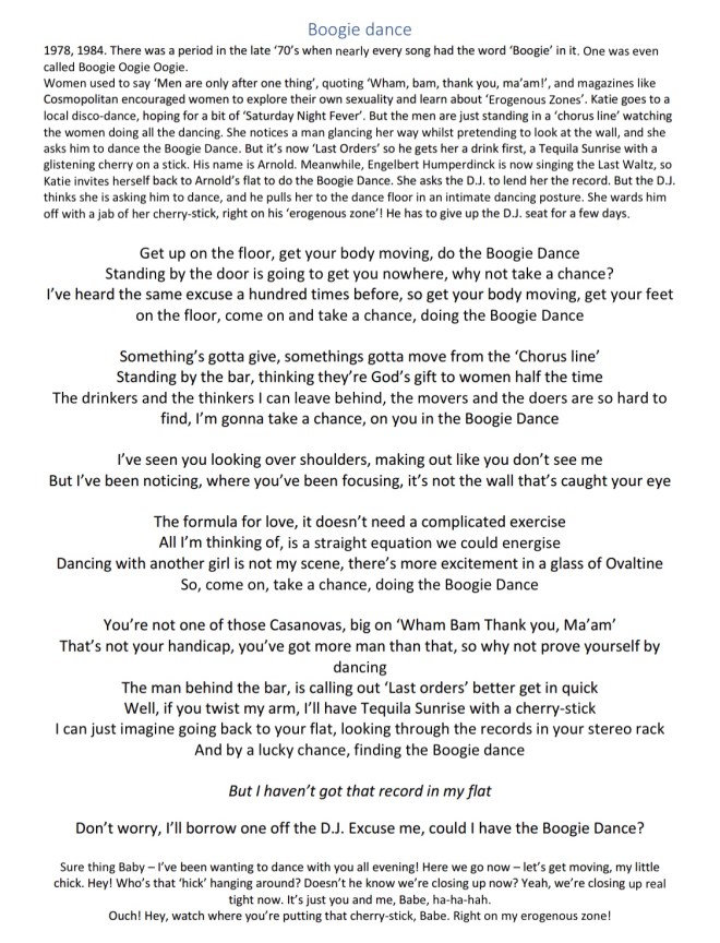 Boogie Dance Share this: Click to share on X (Opens in new window) X Click to share on Facebook (Opens in new window) Facebook Like Loading...