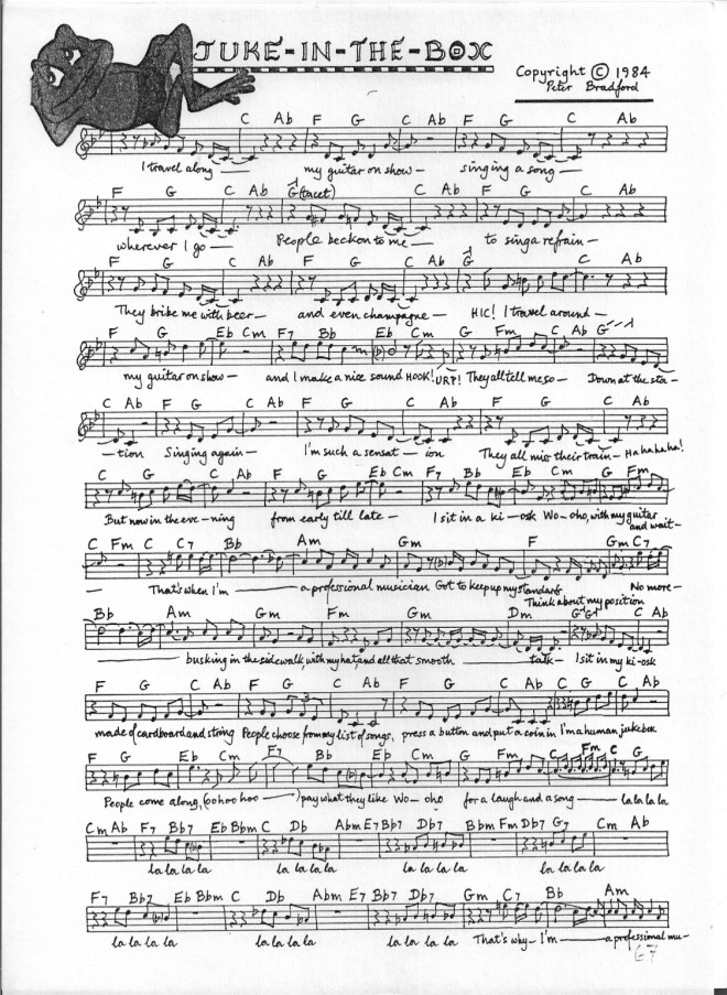 Juke in the box Sorry – no recording of this one as yet, but see musical notation below Share this: Click to share on X (Opens in new window) X Click to share on Facebook (Opens in new window) Facebook Like Loading...