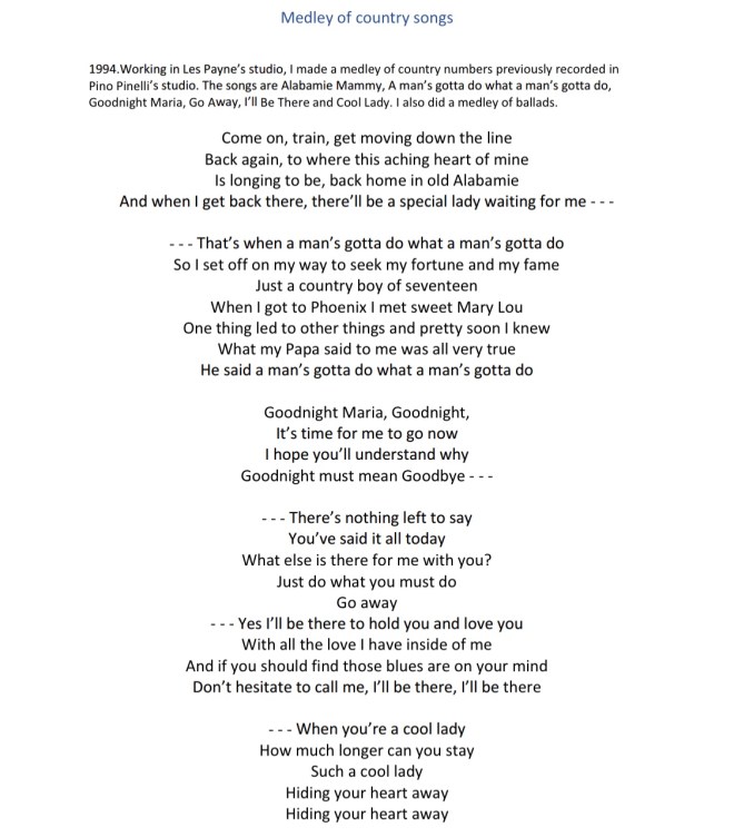 Medley of country songs Share this: Click to share on X (Opens in new window) X Click to share on Facebook (Opens in new window) Facebook Like Loading...