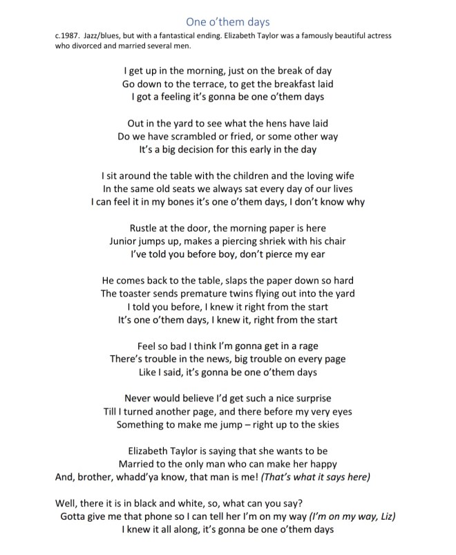 One o’ them days Share this: Click to share on X (Opens in new window) X Click to share on Facebook (Opens in new window) Facebook Like Loading...