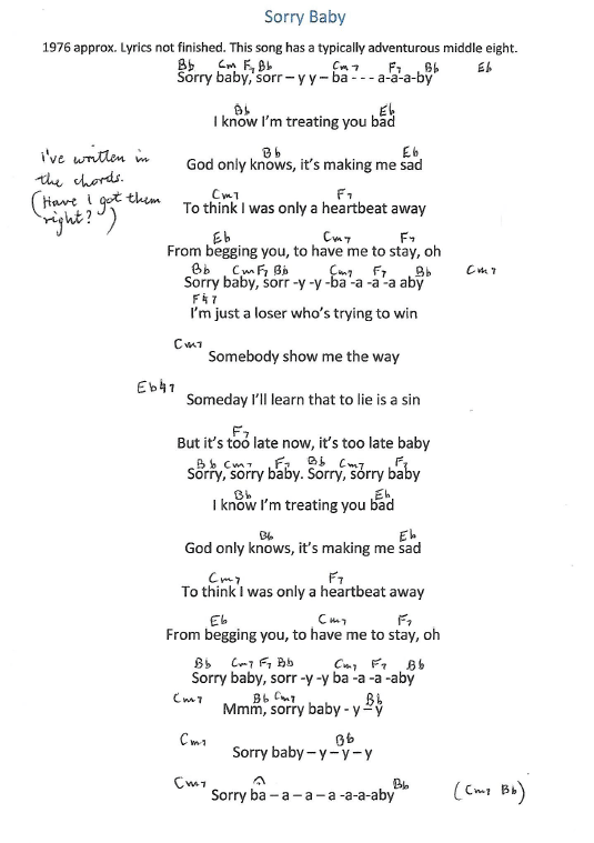 Sorry Baby PeterBradford · Sorry Baby Share this: Click to share on X (Opens in new window) X Click to share on Facebook (Opens in new window) Facebook Like Loading...