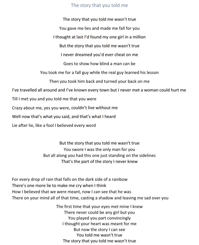 The story that you told me Share this: Click to share on X (Opens in new window) X Click to share on Facebook (Opens in new window) Facebook Like Loading...