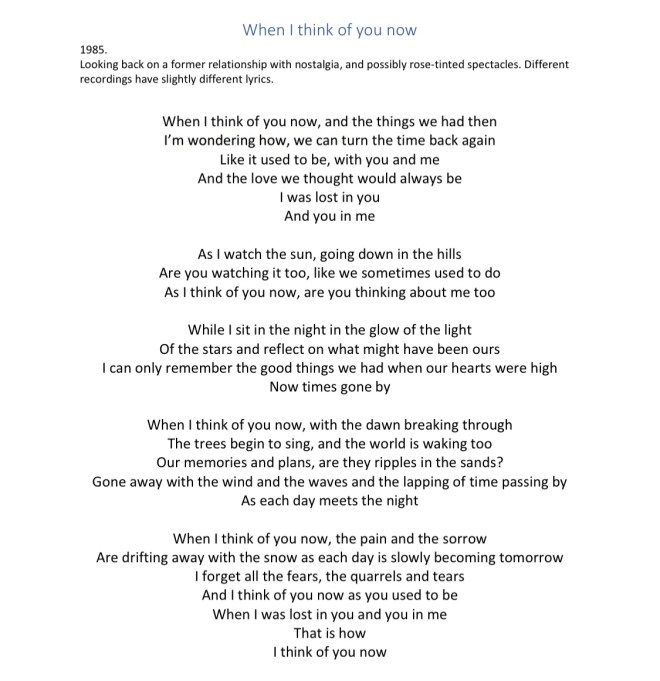 When I think of you now Share this: Click to share on X (Opens in new window) X Click to share on Facebook (Opens in new window) Facebook Like Loading...